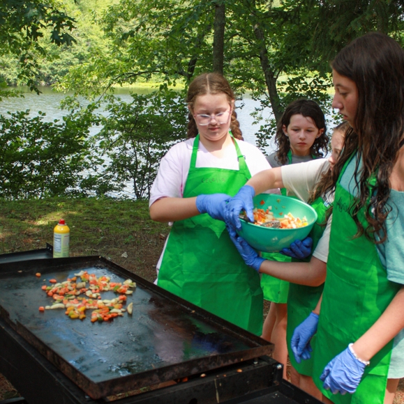You’ll spend two hours a day learning important kitchen skills, as you make a scrumptious breakfast, flavorful lunch, delicious dinner, and delightful dessert, while earning your Girl Scout Simple Meals badge. Fill the remainder of each day participating in Lake Rickabear Summer Adventurer Program activities.
